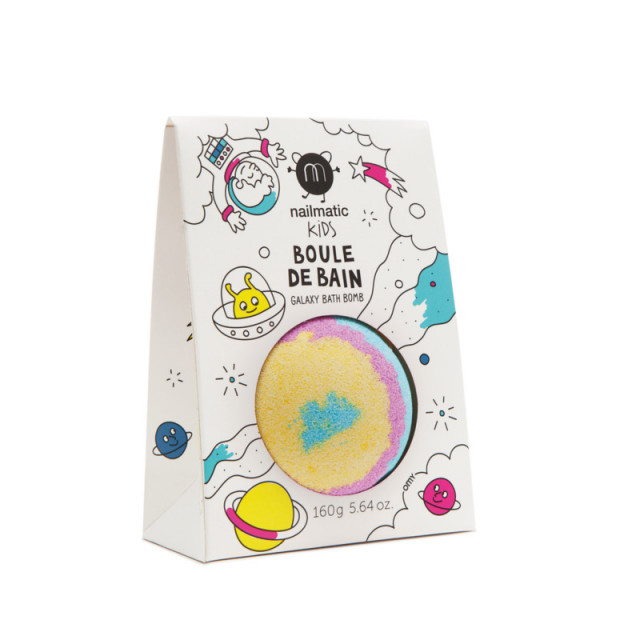 Les boules de bain bleu jaune et rose« spoutnik bath ball » de chez Nailmatic kids sont allé simple vers un bain pétillant et coloré.